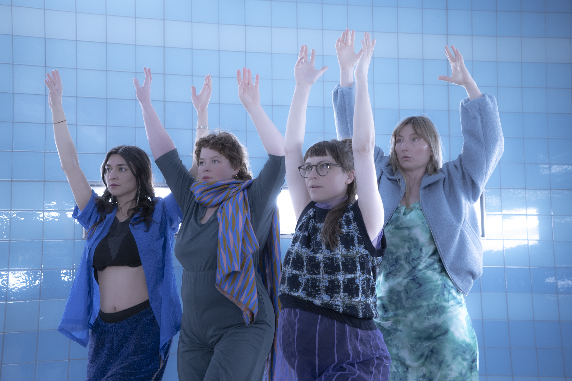Wasser verbindet alle Körper, die Wasser in sich tragen. Wasser erinnert, speichert, vergisst, migriert und zirkuliert und so lädt die Glitch AG in einen Raum, in dem die vier Performer*innen der Glitch AG gemeinsam mit dem Publikum eine aquatische Gemeinschaft bilden, um das Thema Fürsorge in den Fokus zu rücken.